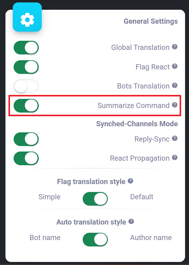 This command allows you to define the type of premium translation model to use (Fast-Engine/Subscription Plan) at a server level, as well as enabling or disabling translation. By default, translation is Enabled and priority is set to the Fast-Engine unless a subscription plan is activated using the /activate-plan command. In this case, priority will be set to Subscription.